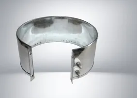 Если при нагреве фильеры используются патронные и плоские элементы, то основную роль в нагреве всей массы сырья, проходящего через цилиндрический корпус экструдера, играют нагреватели в виде кольца. Они представляют собой хомут, который закрепляется на определенных участках корпуса. Температура, которую они обеспечивают при работе, может составлять вплоть до 450°С в зависимости от требований к технологии переработки.