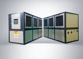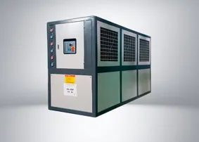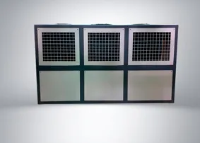 - Моноблочный чиллер с охлаждением воздушного прекрасно подходит для тех случаев, когда требуется разместить все части оборудования внутри цеха.